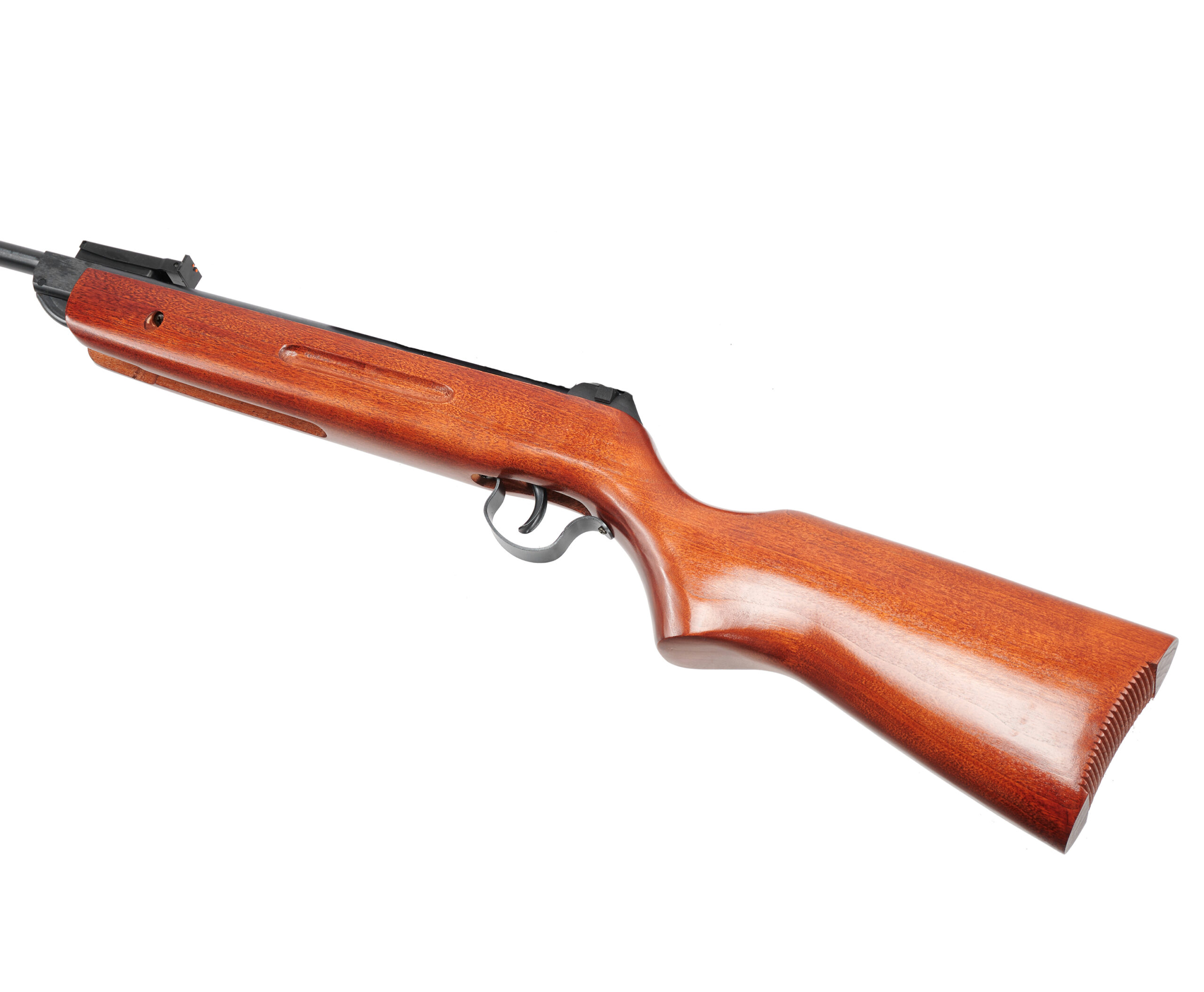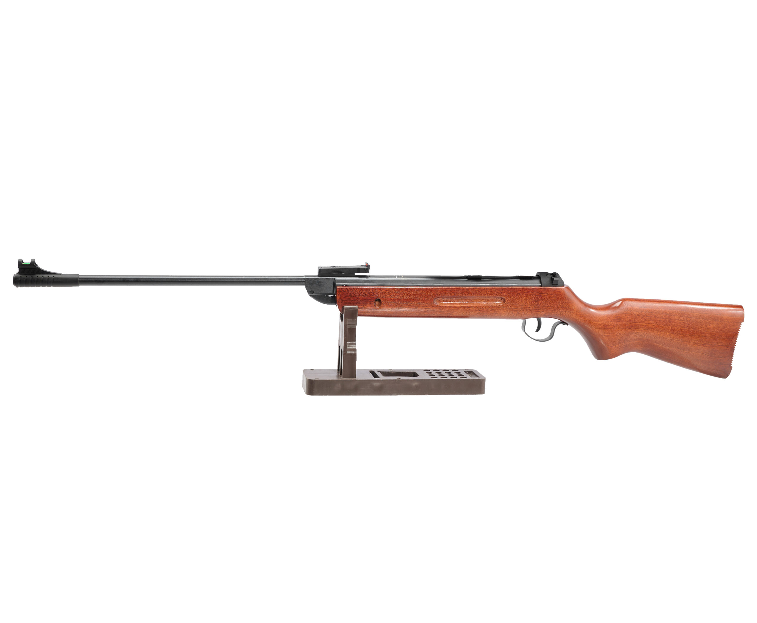 На гвинтівці встановлений запобіжник, та регульована мушка з фібероптичними волокнами.