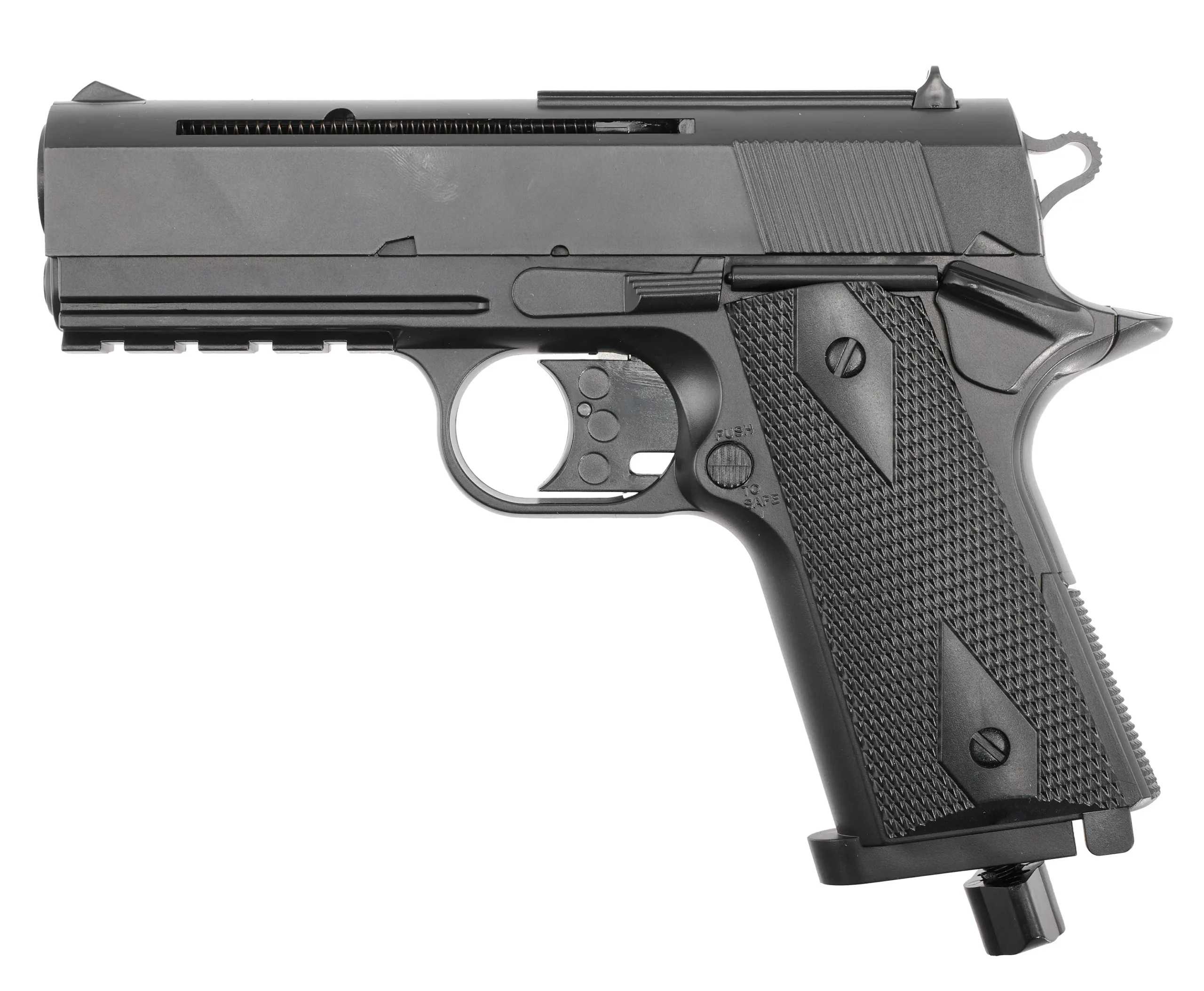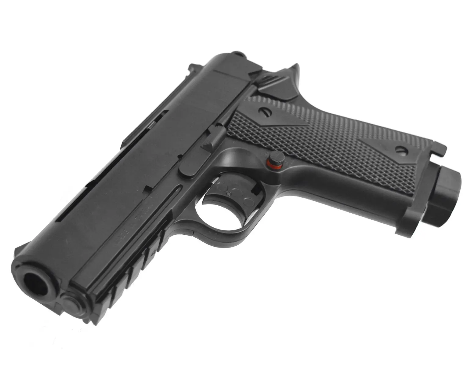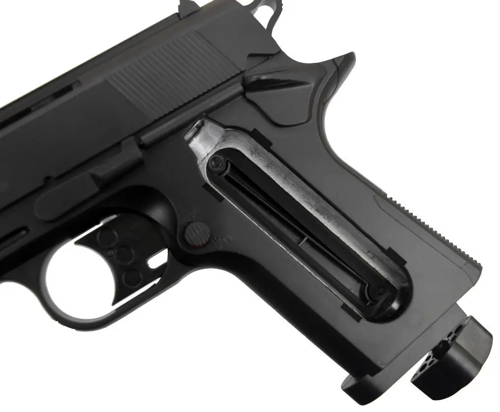 Colt 1911 — це компактний і ергономічний пневматичний пістолет, виконаний у стилі знаменитого Colt Defender. Його особливістю є інтегрований магазин, вбудований у корпус, що значно спрощує конструкцію і виключає ймовірність його втрати під час використання.
